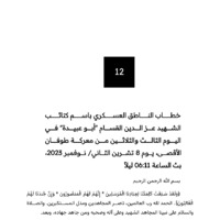 - ar طوفان الأقصى: تفريغ كلمات وخطابات الناطق العسكري لكتائب الشهيد عزّ الدين القسّام