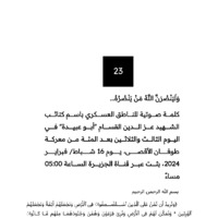 طوفان الأقصى: تفريغ كلمات وخطابات الناطق العسكري لكتائب الشهيد عزّ الدين القسّام (ص 97) |