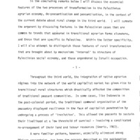 - The Dislocation and Reconstitution of a Peasantry: The Social Economy of Agrarian Palestine in the Central Highlands and the Jordan Valley, 1960-1980