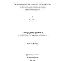 - The Dispossession of the Peasantry: Colonial Policies, Settler Capitalism, and Rural Change in Palestine, 1918-1984