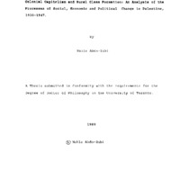 Colonial Capitalism and Rural Class Formation: An Analysis of the Processes of Social, Economic and Political Change in Palestine, 1920-1947.